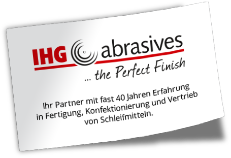 Die IHG ABRASIVES GmbH wurde von Herrn Helmut Gerstenberg gegründet. Mit seiner fast 40-jährigen Erfahrung in der Schleifmittelindustrie (30 Jahre AWUKO Schleifmittel Hann. Münden) wählt Herr Gerstenberg die für ihn qualitativ hochwertigsten Produkte weltweiter Hersteller aus, um den technischen Anforderungen seiner Kunden vollauf gerecht zu werden. Für einige Bereiche erhielt er sogar Generalvertretungsrechte, wodurch seine Erfolge der Vergangenheit auf besondere Art und Weise zum Ausdruck gebracht werden.